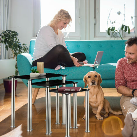 Satztisch 3er Set Schwarzes Spiegelglas Deko Beistelltische Fur