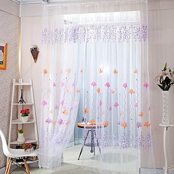 Amazon De Gardinen Mit Blumendruck Durchscheinend Fur Fenster