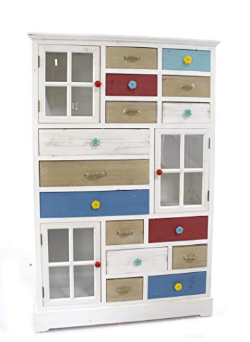 Daro Deko Holz Vitrinen Schrank Mit 3 Turen Und 15 Schubladen 90cm