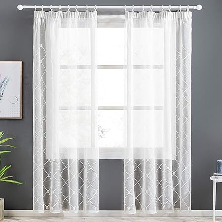 Topfinel Voile Gardinen Mit Krauselband Mit Stickerei Kariert