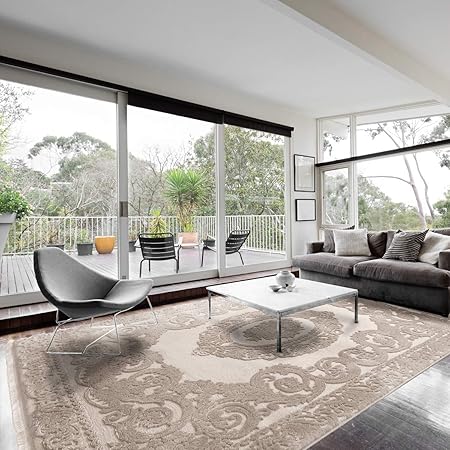 Amazon De Mynes Teppiche Wohnzimmer Beige Grau Kurzflor Mit